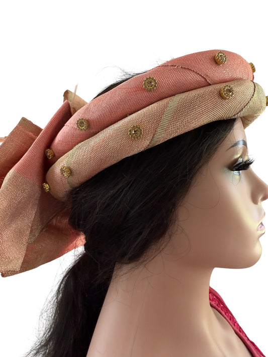 Peach and Gold Shade Hat Made With High Quality Aso Oke