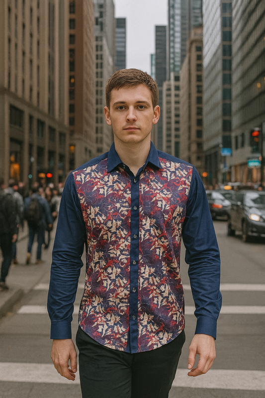 Ricardo Martino Men's Navy Blue Floral Accent Shirt
