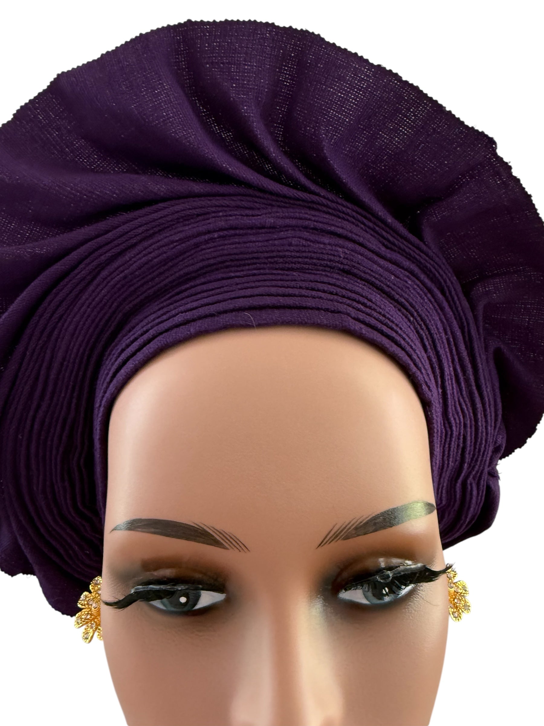 Elevate your traditional look with this stunning purple Aso Oke auto Gele. Made from high-quality Aso Oke fabric, this auto Gele is perfect for special occasions such as weddings, parties, or cultural events.