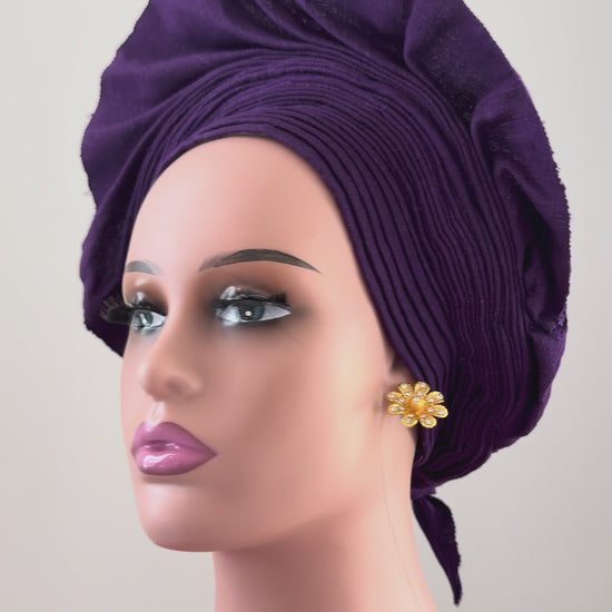Purple Aso Oke Auto Gele